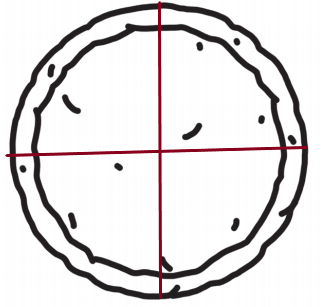 Draw lines to show how he cuts the pizza.