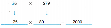 To estimate 26 × 79, replace 26 and 79 with the compatible numbers 25 and 80.