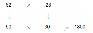 To estimate the product of 62 and 28 by rounding, how would you round the factors? What would the estimated product be?